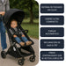El coche incluye malla de ventilación respirable, pensada para mantener una adecuada circulación de aire y mayor bienestar del bebé, especialmente en días cálidos. Su toldo repelente al agua y con protección solar protege al bebé del sol y de condiciones climáticas variables.